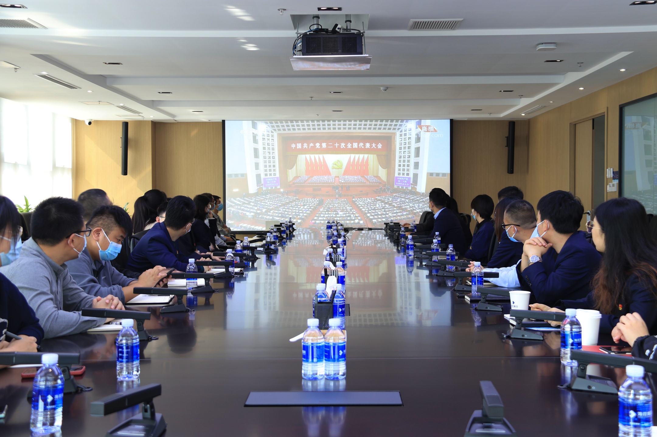 ▲海控集團黨員干部職工集中收看黨的二十大開幕會實況