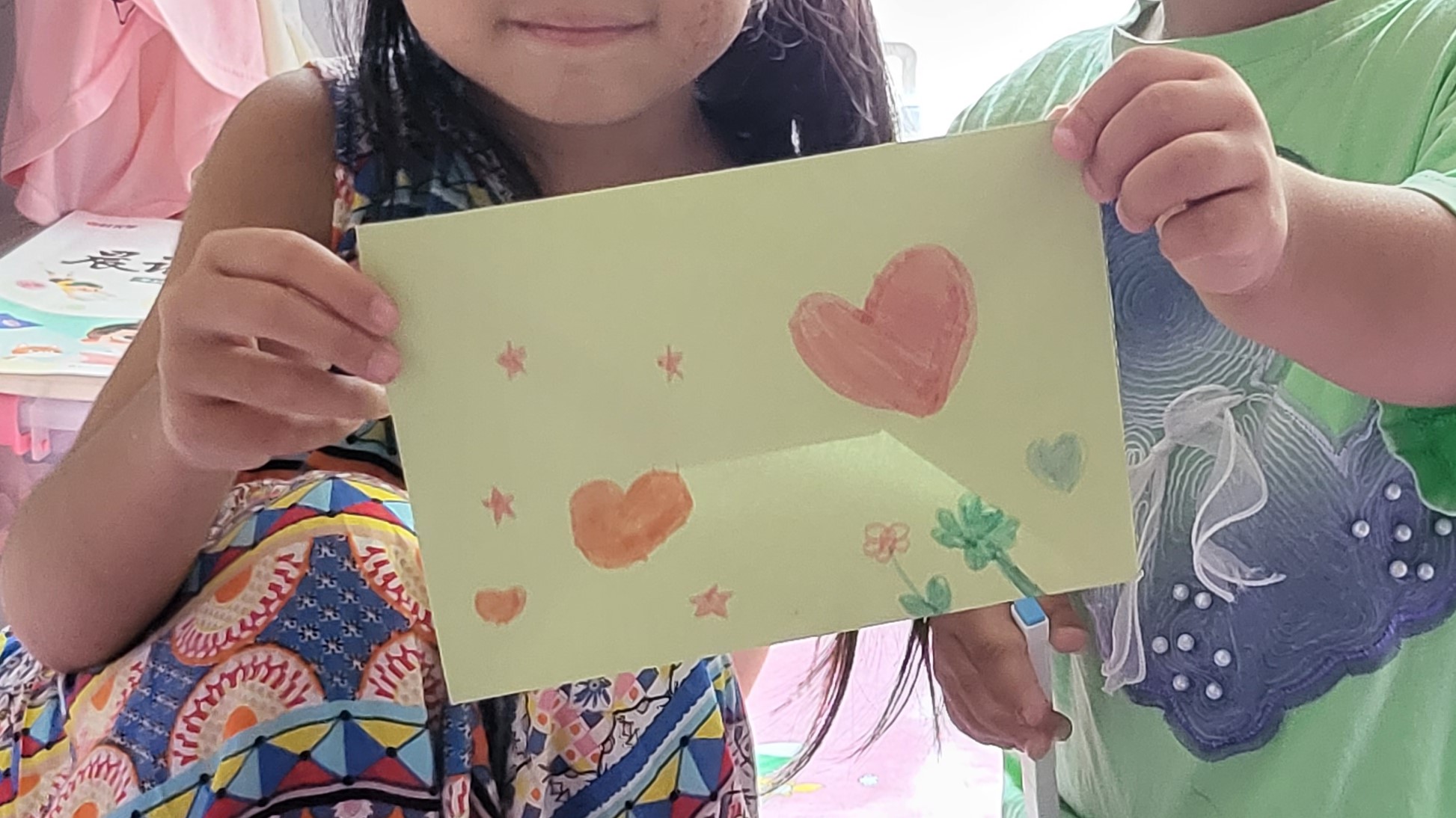 收到“愛(ài)心小書(shū)包”禮物的小姑娘,臉上露出了開(kāi)心的笑容,用彩筆為黨員叔叔阿姨畫(huà)了一幅可愛(ài)的“愛(ài)心畫(huà)”。