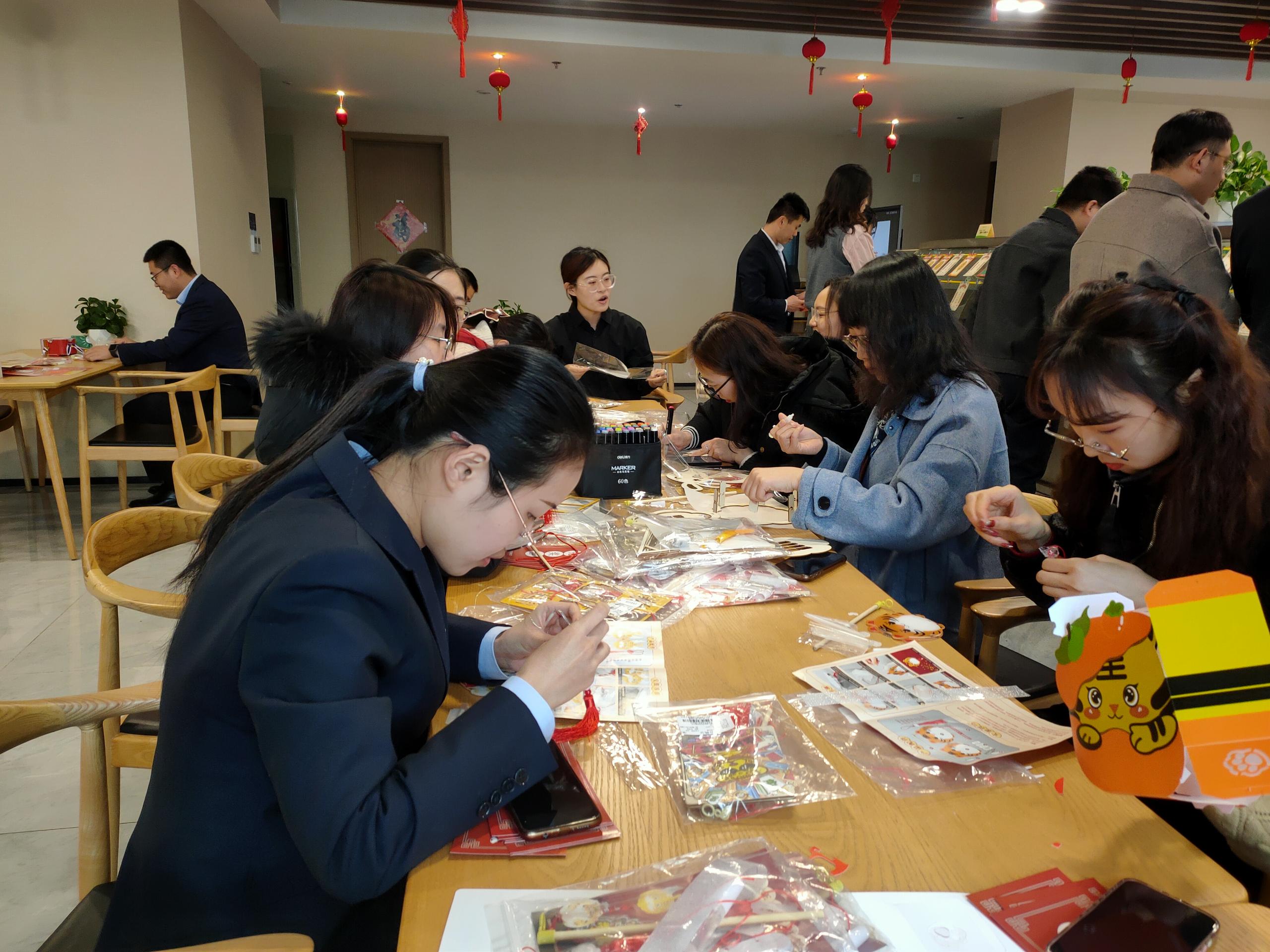 “風(fēng)乍起,吹起一池春水(打一網(wǎng)絡(luò)平臺)”、“杜鵑聲聲杜鵑開(打一成語)”、“二三四五六七八九(打一成語)”、“氙氚(打一成語)”……燈謎迷面既有節(jié)日元素,也有字謎、成語等內(nèi)容,一個個飽含寓意的燈謎讓集團各部門員工在字謎前駐足凝神,思索良久后滿心歡喜地摘下自己猜中的謎面,前往兌獎區(qū)核對謎底,猜對謎者均可領(lǐng)取兌獎券,換取禮品。
