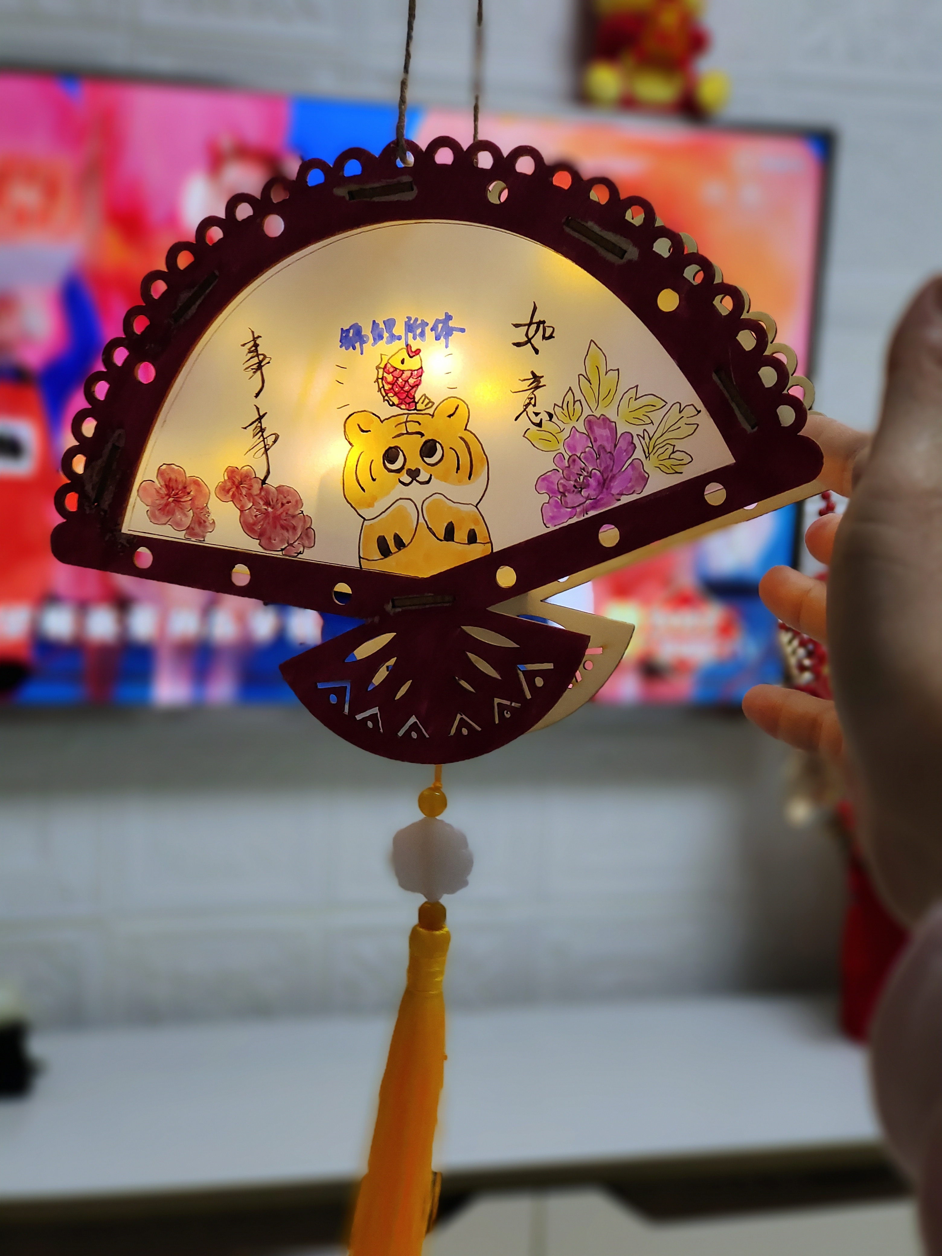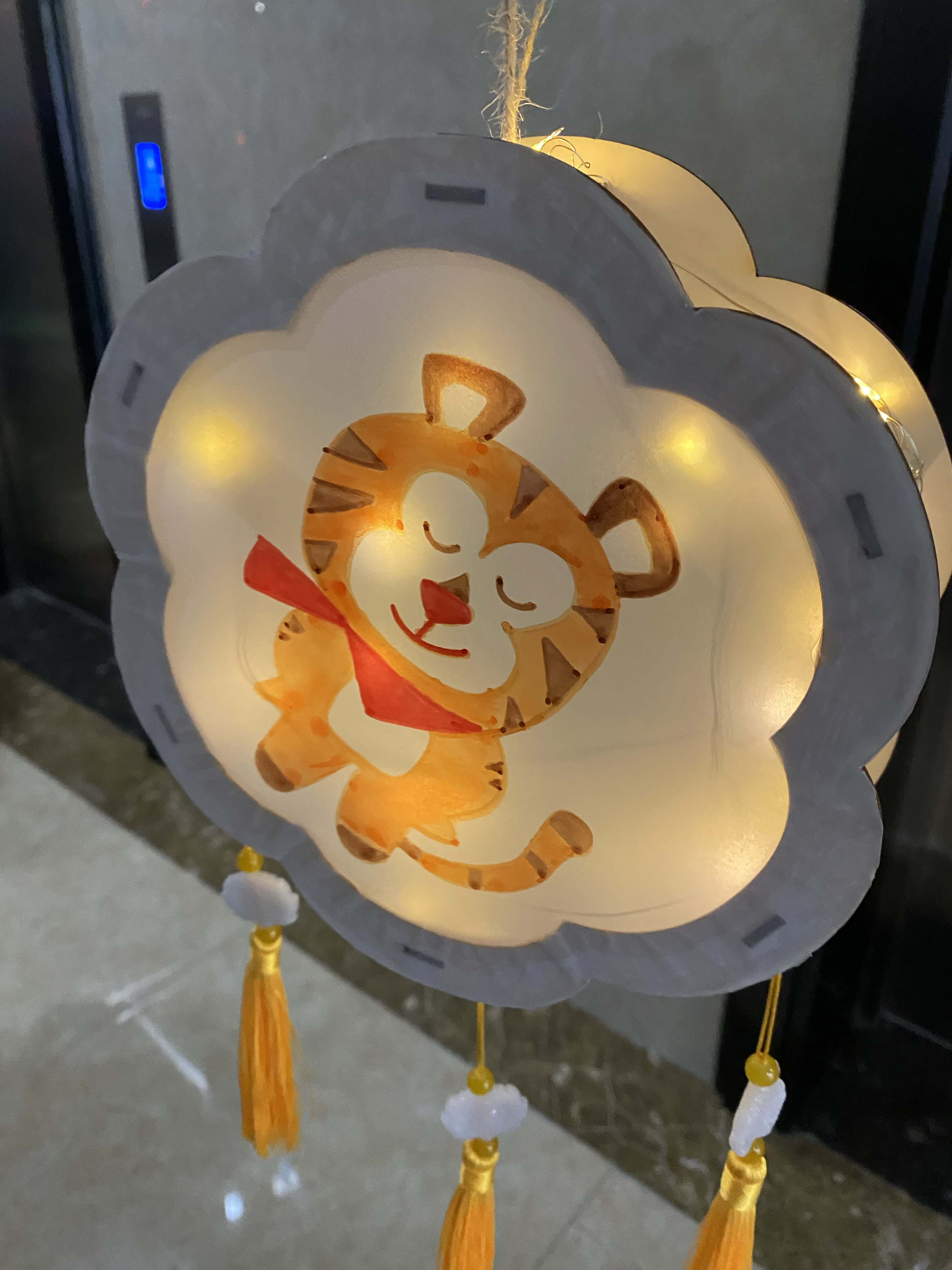 猜完燈謎,就到了大家最期待的做花燈環(huán)節(jié)。大家拿到材料包后,迫不及待地打開研究起來。集團的小哥哥小姐姐們小心翼翼修剪、鏤空好燈面,并仔細地將不同的燈面粘貼、拼接起來。最后給燈籠掛上流蘇,頂部裝好燈桿,內(nèi)部插上彩燈后,一個精美的元宵燈就誕生了。“這是我親手做的燈籠,象征幸福、祥和,簡直太好看了!”做好燈籠的邵山成就感滿滿,興奮地和燈籠合影留念。