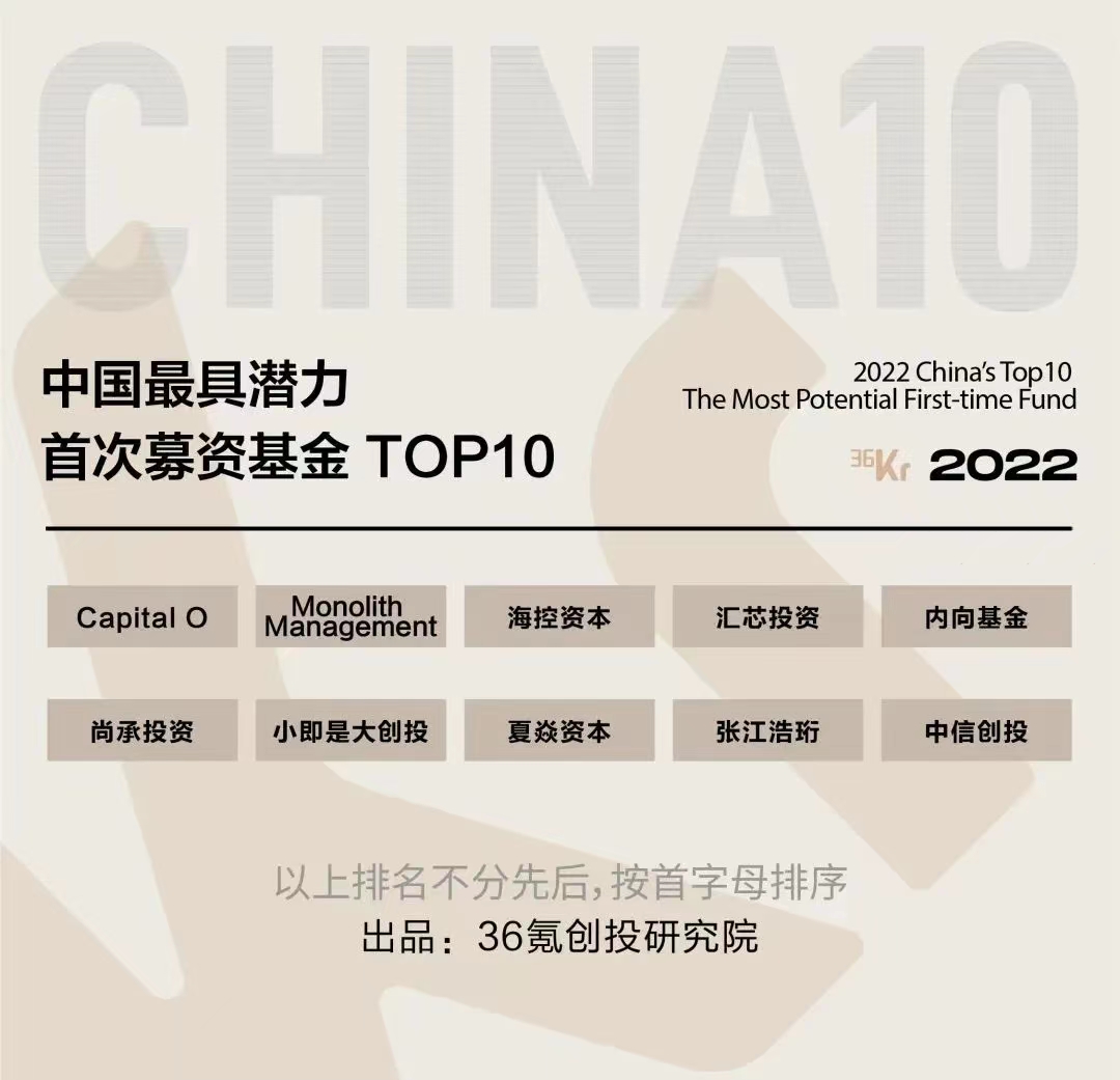 9月21日,36氪“2022中國基金合伙人未來峰會”在杭州舉行,會上揭曉了2022年度中國基金系列榜單,海控資本榮獲「2022年度中國最具潛力首次募資基金TOP10」榮譽,收獲行業(yè)權威認可。