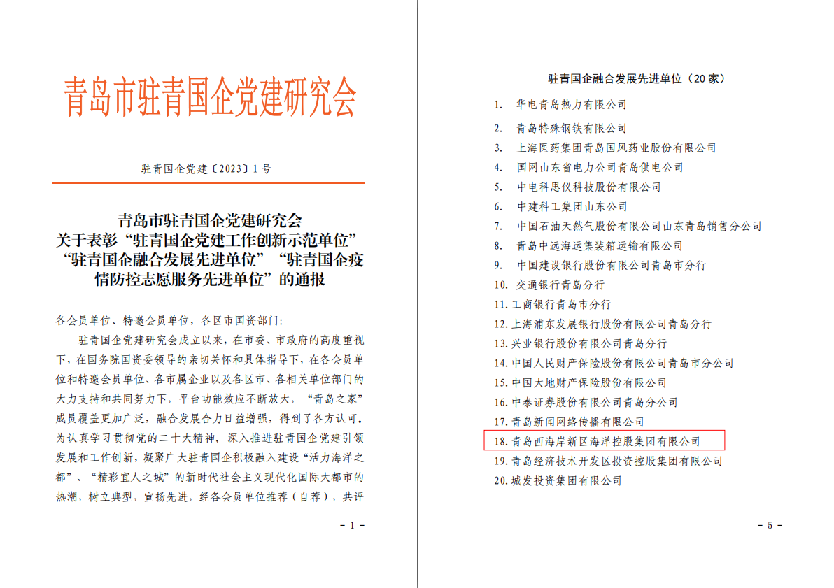 要聞信息 | 海控集團(tuán)榮獲“駐青國(guó)企融合發(fā)展先進(jìn)單位”稱(chēng)號(hào)